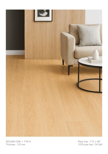 GOLDEN OAK I F1014 Plank Size - 7.2” x 48” Thickness - 3.0 mm 10 Pcs per box / 24 Sqft