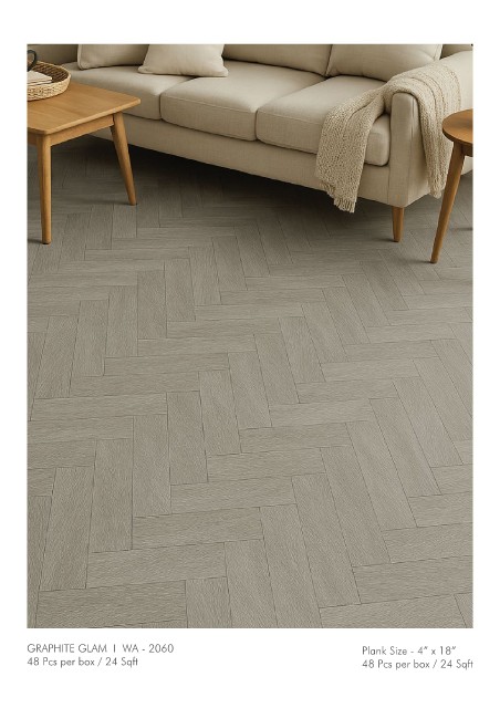GRAPHITE GLAM I WA - 2060 Plank Size - 4” x 18” 48 Pcs per box / 24 Sqft 48 Pcs per box / 24 Sqft