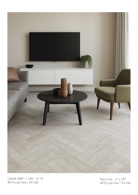 LUNAR DRIFT I WA - 3110 Plank Size - 4” x 18” 48 Pcs per box / 24 Sqft 48 Pcs per box / 24 Sqft