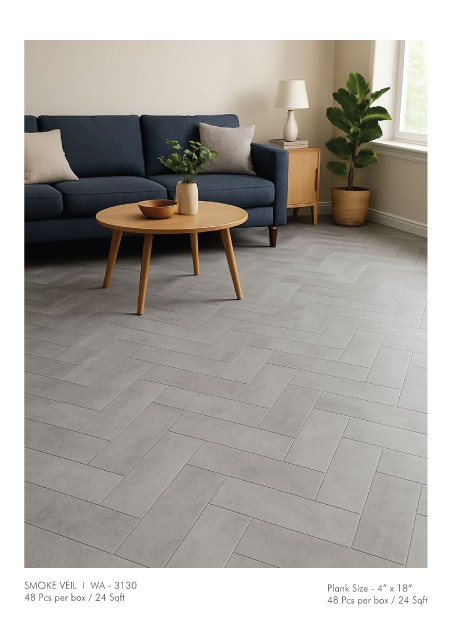 SMOKE VEIL I WA - 3130 Plank Size - 4” x 18” 48 Pcs per box / 24 Sqft 48 Pcs per box / 24 Sqft