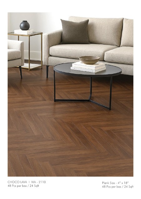 CHOCO LAVA I WA - 2110 Plank Size - 4” x 18” 48 Pcs per box / 24 Sqft 48 Pcs per box / 24 Sqft
