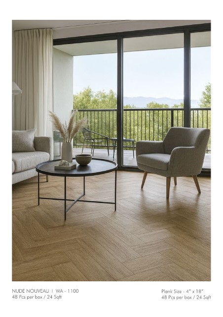 NUDE NOUVEAU I WA - 1100 Plank Size - 4” x 18” 48 Pcs per box / 24 Sqft 48 Pcs per box / 24 Sqft