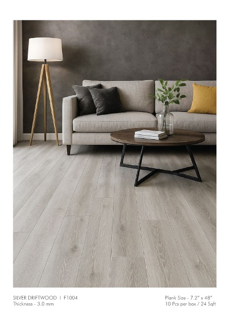 SILVER DRIFTWOOD I F1004 Plank Size - 7.2” x 48” Thickness - 3.0 mm 10 Pcs per box / 24 Sqft