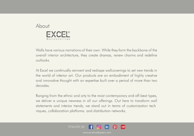 At Excel we continually reinvent and reshape wallcoverings to set new trends in