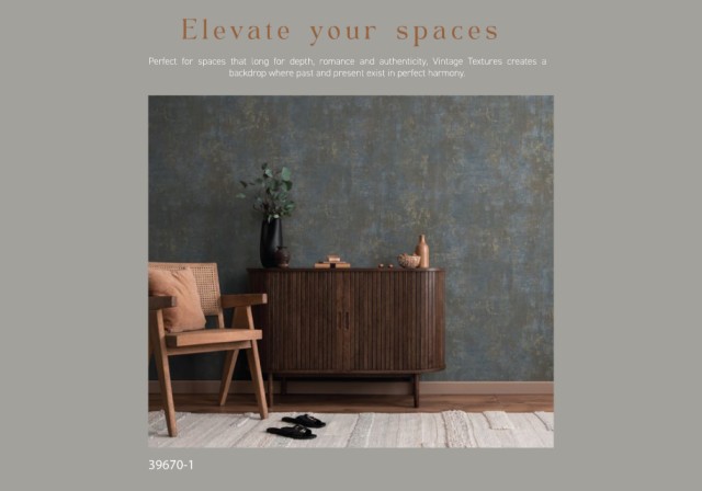 Ele vate y our spaces Perfect for spaces that long for depth, romance and authenticity, Vintage Textures creates a backdrop where past and present exist in perfect harmony. 39670-1